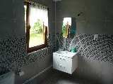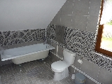Upstairs, there are three comfortable bedrooms and a bathroom. Two bedrooms feature double beds, while the third bedroom is furnished with two single beds.
