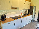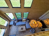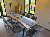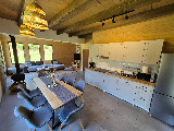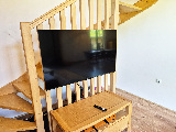 On the ground floor, guests will find a living room, dining area, a fully equipped kitchen, a bathroom, and one bedroom with a double bed.