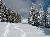 This is the easiest slope. It is 850 m long, 135 m fall. The upper part is wide and it is getting narrow – the upper part is good for learning. The lower part is quite steep (skier call it “the wall”) it stretches till the foot of Mihaly alps.